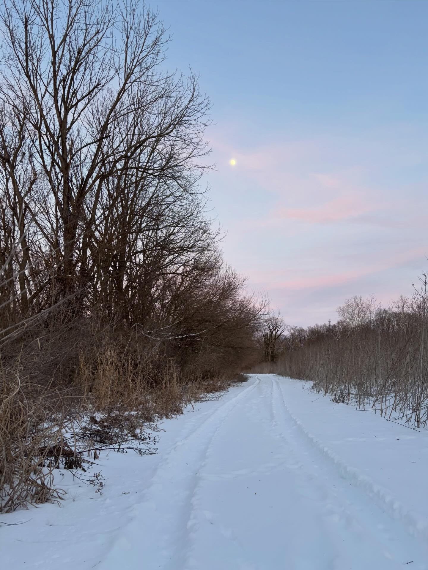 Even though it’s very cold, I force myself to go on a walk and soon enough my ordinary walk turns into a procession, the kind of procession that leads you somewhere unexpected. I step outside and stumble onto a trail that takes me to the woods. All of a sudden I'm immersed amid snow-covered trees, following hoof prints through the snow. Venturing out, I see I'm not alone. The deer leave a path for me to follow and the geese form a V-shape pattern in the sky. A hawk with outstretched wings begins circling high above. It feels as if his stoic eyes are watching over me. In time, the sun starts to set, such glory sweeps across the sky. Hues of gold and blue descend upon the day cleansing my outlook, healing my life. Sometimes I wonder why I don’t take more walks— the answer to all my problems.