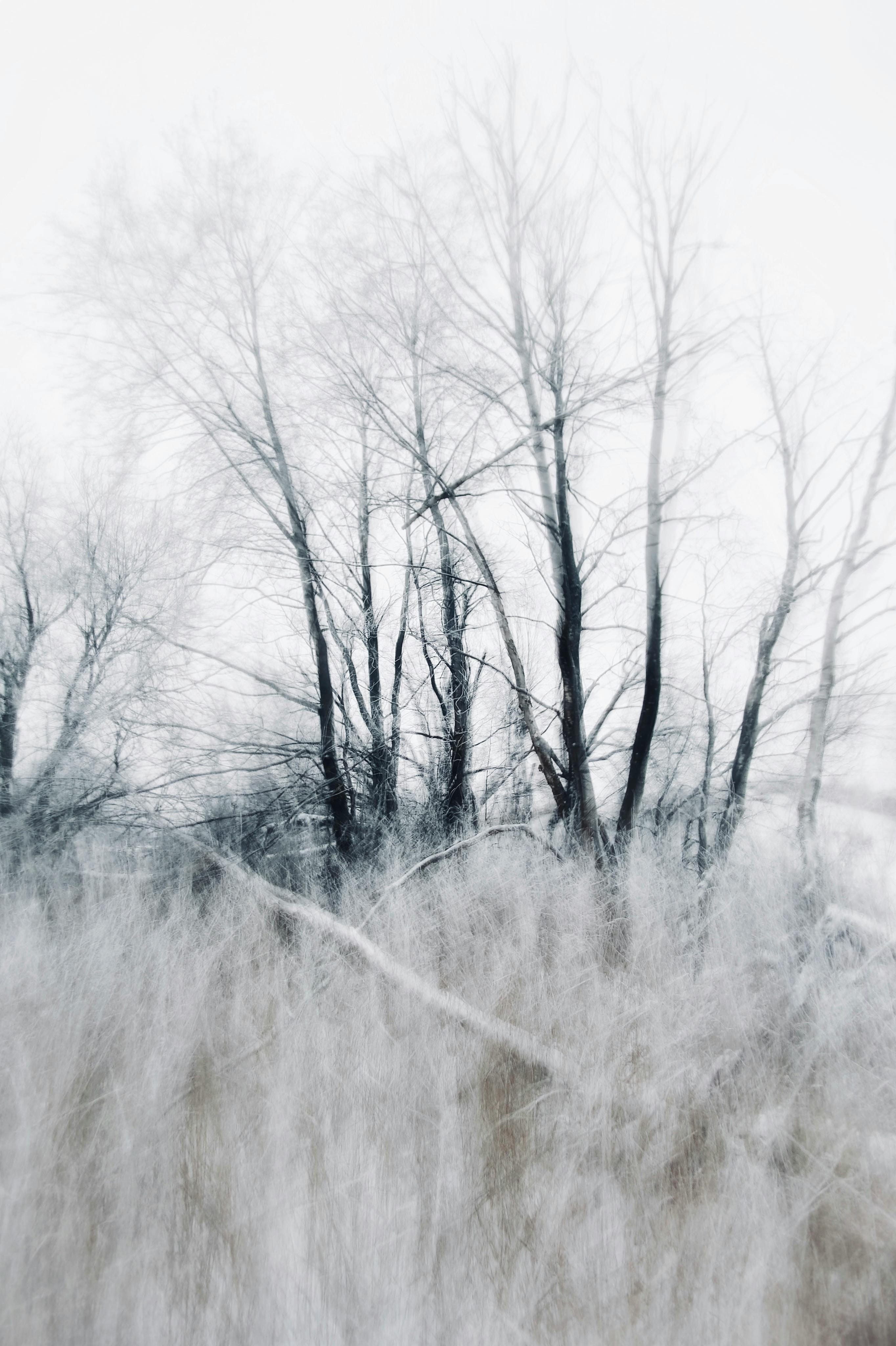 The images are bleak, almost apocalyptic in appearance. What remains are rows of skeleton trees against an opaque landscape.